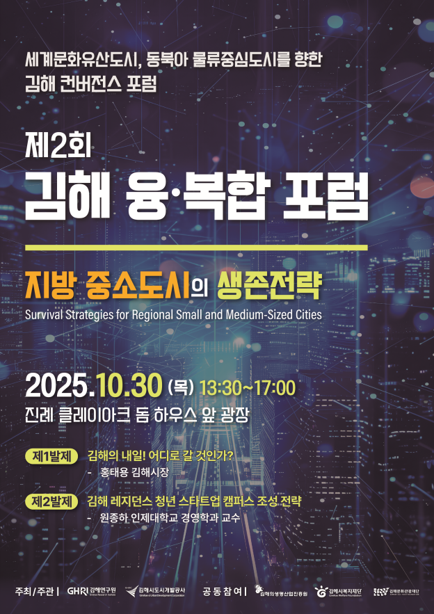 김해의 미래 발전 전략과 협력 방안을 함께 나누는 자리에 많은 관심과 참여 부탁드립니다.