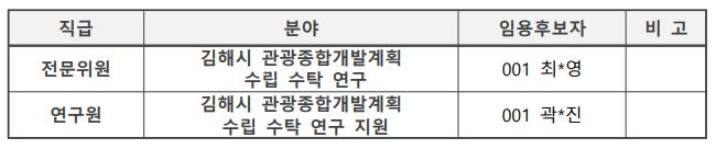 2025년 김해연구원 제1회 정원 외 직원 채용 최종합격자 공고