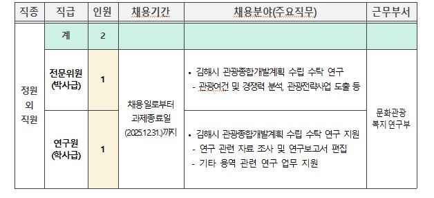 2025년도 제1회 김해연구원 정원 외 직원 채용 공고(제2025-1호)